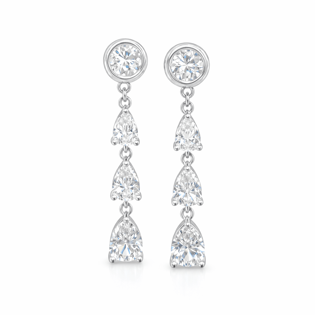 The Diamond Convertible - 2-in-1 Bezel Stud & Pear Cascade Back Drop Earrings