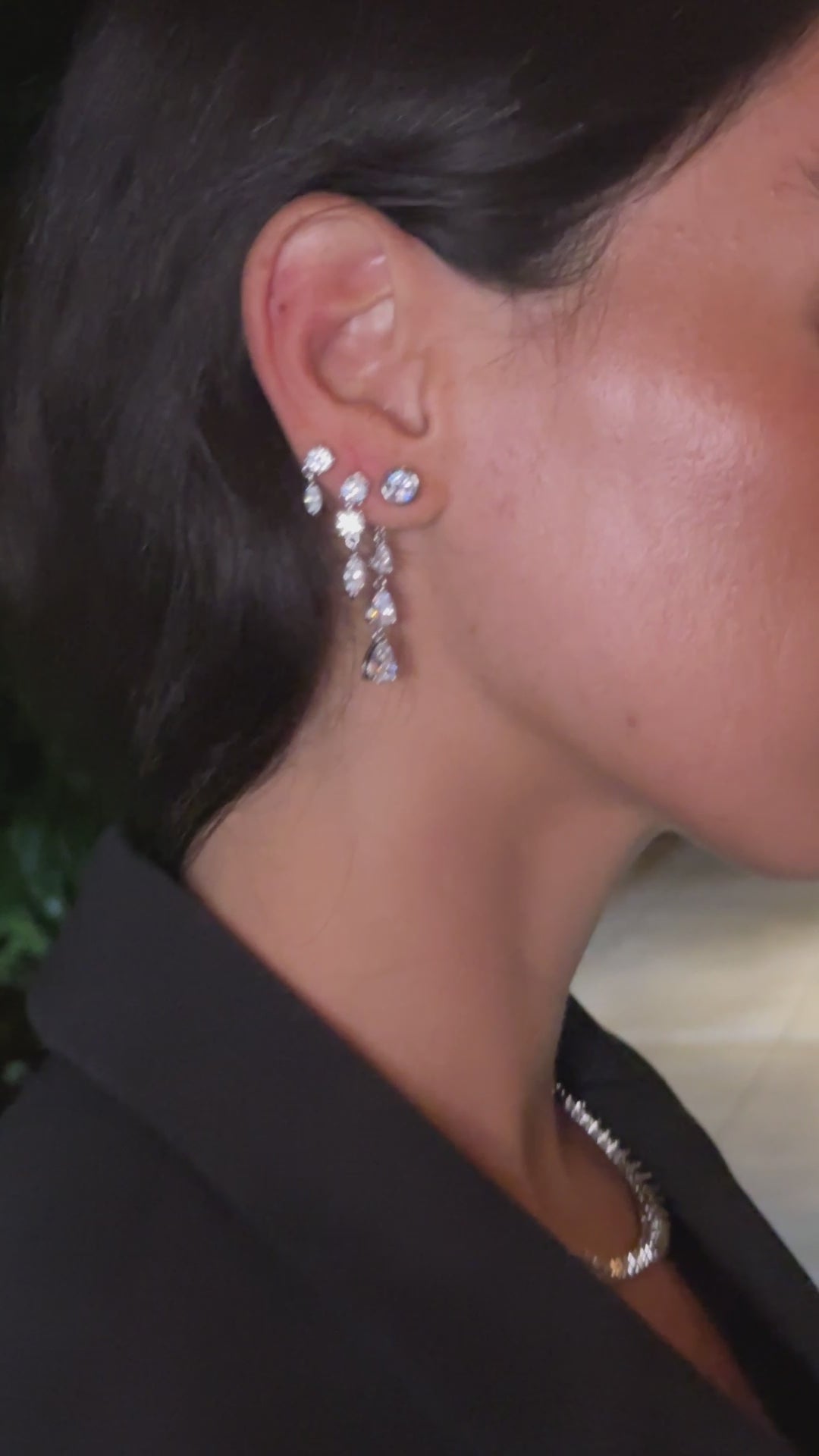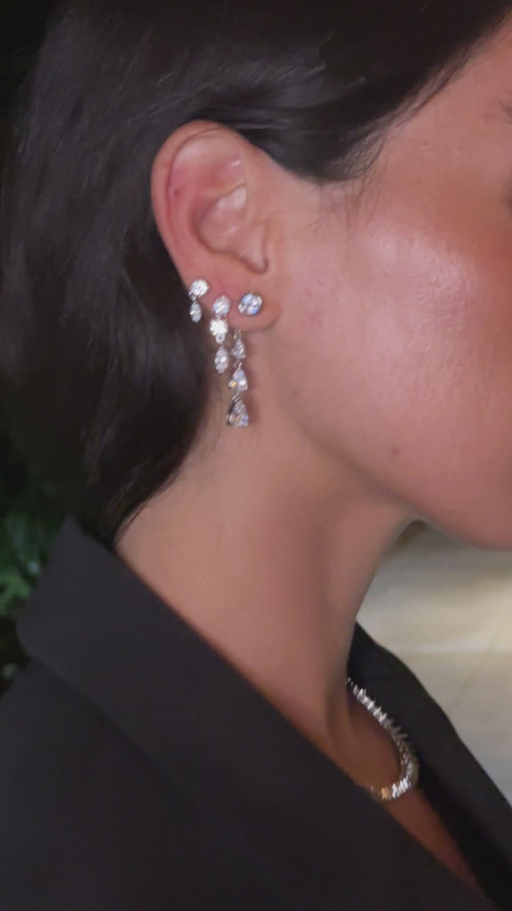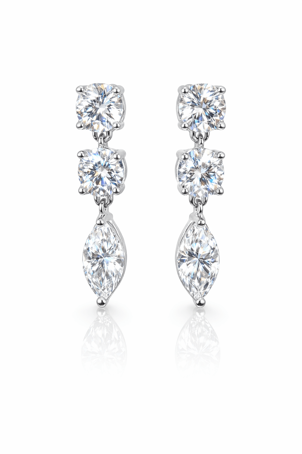 Elegant Three-Stone Diamond Drop Earrings